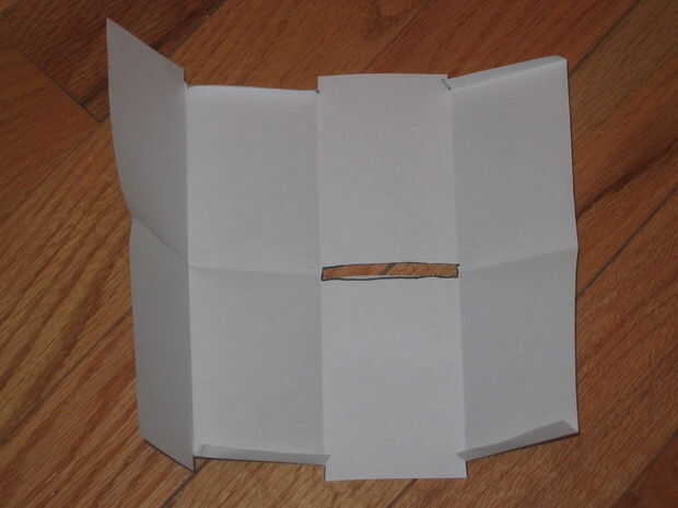 Pliegan las aletas como se muestra. Entonces doble, de izquierda a derecha, de la alineación mostrada en la imagen. Una vez que se ve como la imagen 2, dóblalo en mitad como se muestra en la tercera.