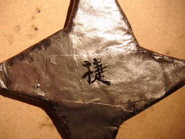 ahora una pluma de tinta negra y dibujar cualquier símbolo chino/japonés que desea que dibujó el símbolo de la victoria/triunfo como veis en la foto y tu listo para convertirse en el ninja