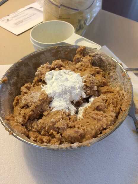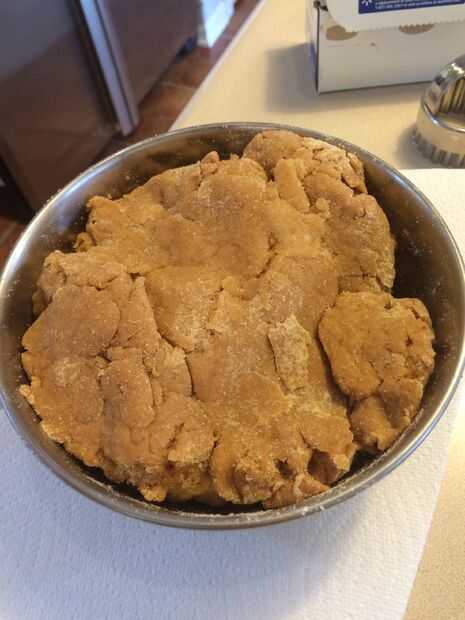 esta receta es tan simple y tan fácil, usted nunca tendrá quecomprar perro trata otra vez.Paso 1: paso uno ingredientes2 tazas de harina1 taza de leche1 taza de mantequilla de maní (grueso o suave)1 cucharada de polvo de hornearPaso 2: precalienta el