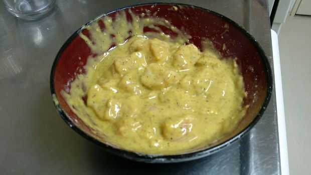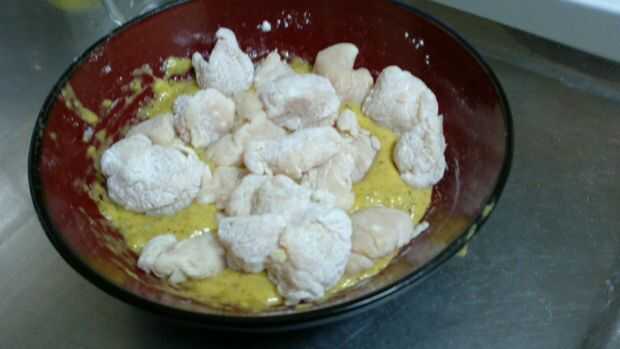 Dragar todas las piezas de pollo en la mezcla de huevo