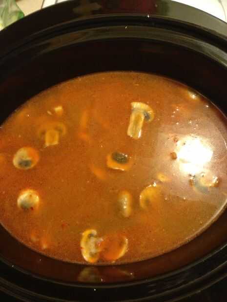 Añadir agua, caldo y mezcla a crockpot o sopa de olla. Deje que cocine en bajo al menos una hora.