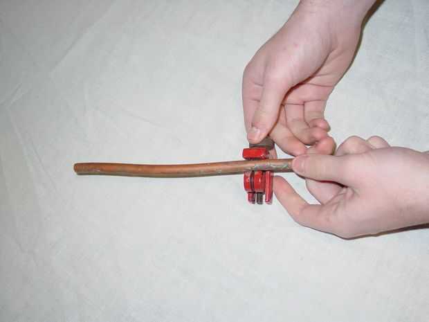 Se trata de extremo de la boquilla. Sobre 8 o 9 pulgadas trabajados para mí. Si tienes una cámara de combustión profunda, puede que necesite un inyector más largo. Si tienes una cámara de combustión superficial, como una Rumford, probablemente se puede también utilizar menos plástico. Utilice un cortador de tubo para el borde más liso.