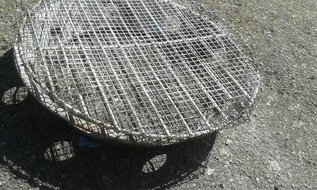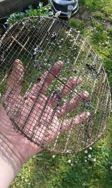 La malla es galvanizado. Ahora hay advertencias por ahí sobre zinc de calefacción, el problema es con la inhalación de vapores de óxido de zinc. Mientras que esto podría conseguir caliente lo suficiente como para hacer esto: