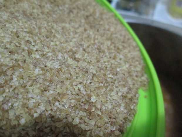 Añadir el burghul a la sopa cuando hierva, dejar cocinar durante uno minutos a fuego alto, luego cocer a fuego lento 5 minutos a fuego medio-bajo.