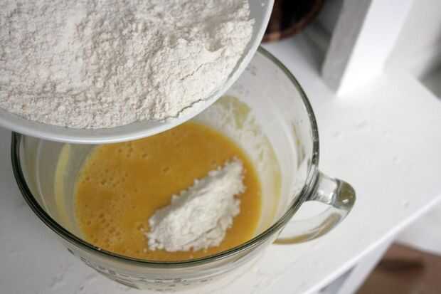 Lentamente revuelva la mezcla de ingredientes secos a la mezcla de ingredientes húmedos.