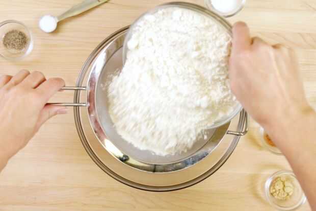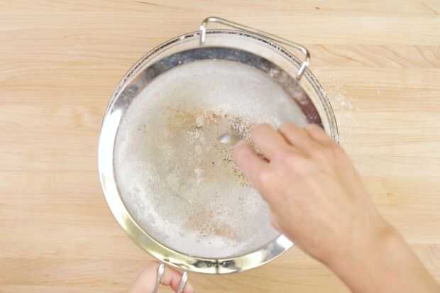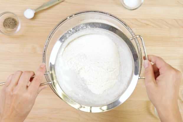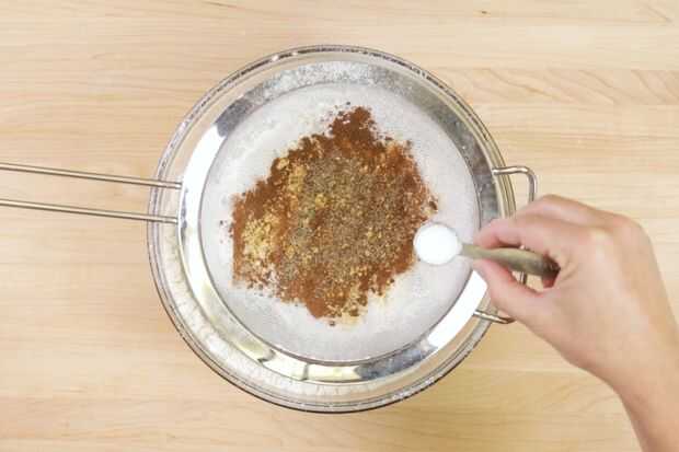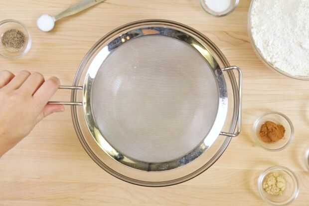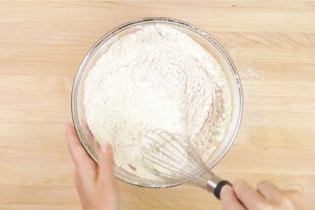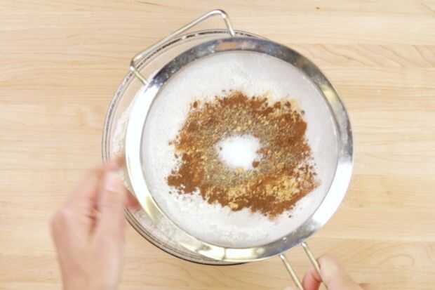 Tamizar todos los ingredientes secos en un tazón mediano tamaño.