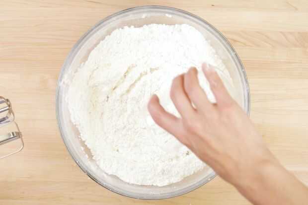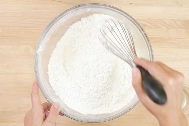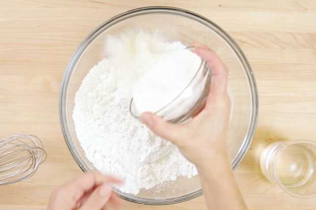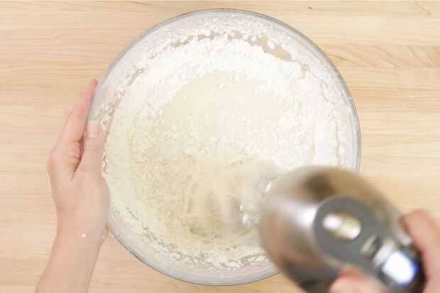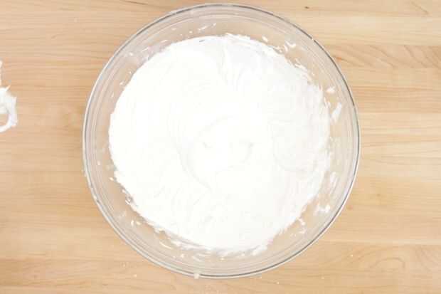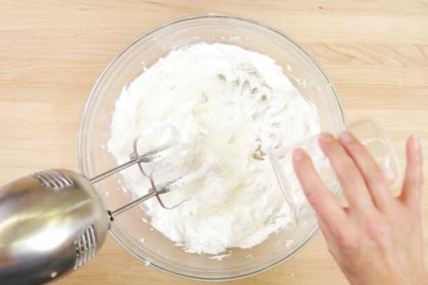 Añadir el polvo de glaseado de azúcar y merengue a un tazón grande y batir.