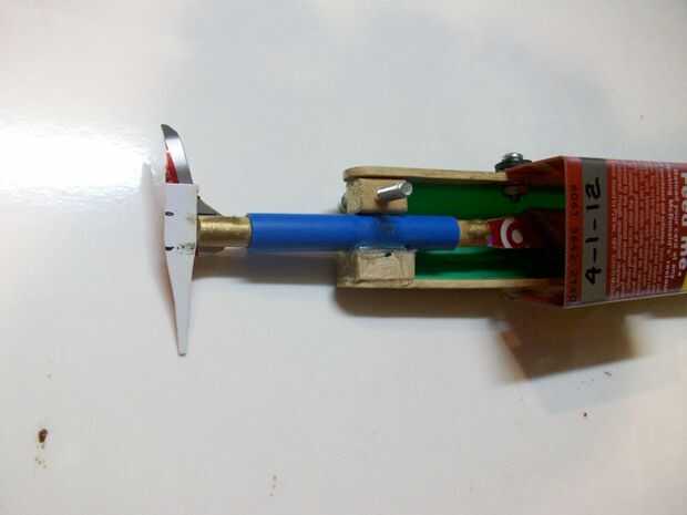 2-se desliza una pieza de plástico de tarjeta de crédito vieja corte en la ranura y el otro extremo en el punto 2 Fig 1. varilla. Unirlo todo.