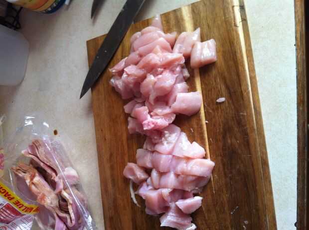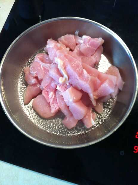 Debe dados también el pollo y cocinar a fuego alto hasta ligeramente doradas. Poner una tapa sobre la olla mientras cocina para dejar la carne seque!