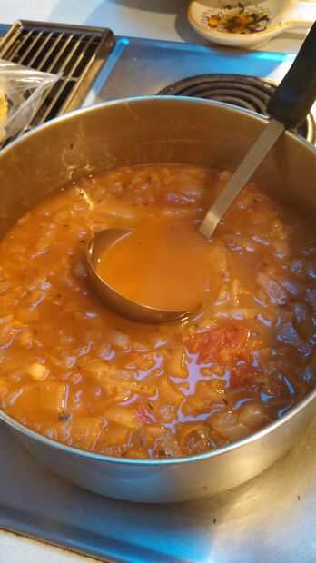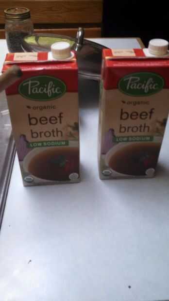 así que ahora lo quieren poner en el caldo de carne, 2 es bueno para una cantidad básica pero puede poner en 3 como el pan más tarde absorbe mucho el líquido, porque quería comer en la noche lo hice dio vuelta el calor mucho y dejarlo hervir como 30 minutos, pero usted puede hacer esto y dejar es permanecer en baja durante unas horas y esto permitirá que el sabor a desarrollar realmente, este sería el momento para añadir más condimento, y la razón que utilizamos baja en sodio es que esto le da la capacidad para controlar la sal.