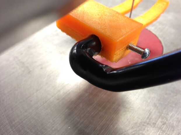 Imprimir esta parte con 85% o más relleno. Debe ser de plástico bastante denso para que tenga suficiente fuerza. Me gusta utilizar un plástico de color brillante en nuestro laboratorio para añadir énfasis a la seguridad.