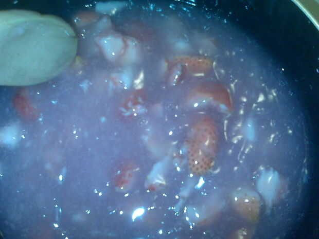 Poner la mezcla de fresas, agua, almidón de maíz y azúcar a la salsa medio pan y cocine hasta que la clara y gruesa.