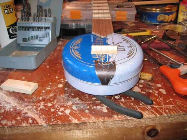 Se enrosca a través del cuerpo y en el cuello, y hace su trabajo bien. La única palabra de precaución si decide hacer lo mismo: Asegúrese de que usted presenta los agujeros para las cuerdas o se romperán si se aprietan contra las brocas afiladas.