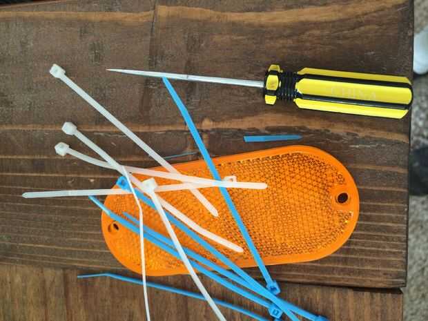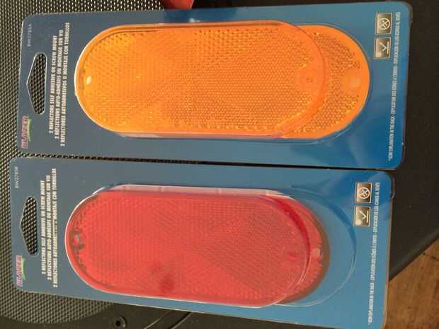 reflectores automotores (los que conseguí eran $1,94 por un par en Walmart. Tengo dos juegos de rojo y dos conjuntos de amarillo).