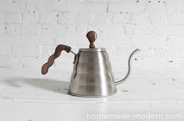Utilizo mi hervidor de agua de cuello de cisne de Hario para hacer vierta por encima del café. Me gusta todo excepto sus agarraderas de plástico, así que decidí tallar nuevas manijas de un trozo de madera de nogal con mi taladro inalámbrico. Talla con un taladro es muy fácil usando una broca de taladro del punto de brad, una lijadora de tambor y un bar de talla. Me gusta mucho la idea de proyectos DIY parciales que un objeto actualizado y modificado para requisitos particulares. Estoy emocionado de personalizar más de mis artículos de cocina de acero inoxidable con manijas de nogal para que te ajuste.