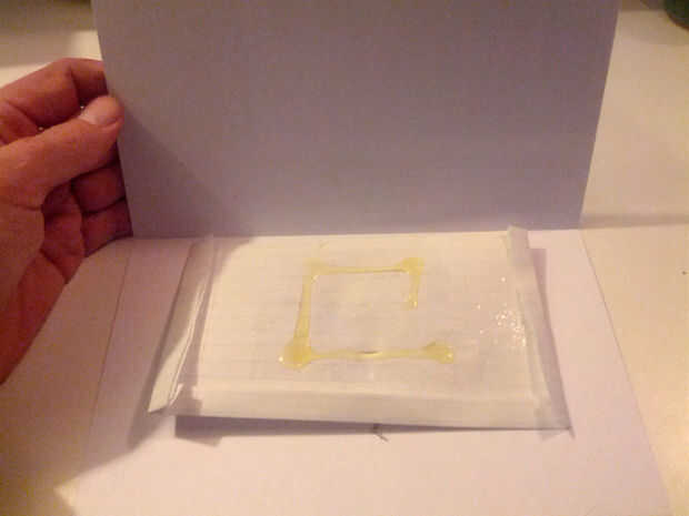 No se olvide de la cinta y pegar el otro lado del paquete llenada de brillo.