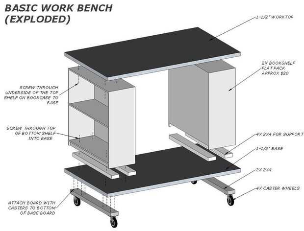 1: instalar las ruedas a su 2 x 4 y luego fije el 2 x 4 a la pieza de la parte inferior del Banco.