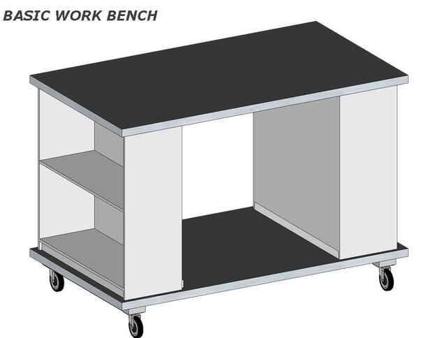 Parte superior y una inferior de mesa de trabajo. Utilicé una mesa que es 1-1/2" pero se puede utilizar 3/4 contrachapado doblado así