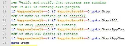 Se utiliza el comando ir a para redirigir la secuencia de comandos a los lugares adecuados. Puesto que el script está diseñado para ejecutar todo desde la parte superior hacia abajo, es importante evitar que el script hace todo en una larga secuencia. Por esta razón la secuencia envía el programa a una etiqueta llamada parada que se encuentra al final de la secuencia de comandos.
