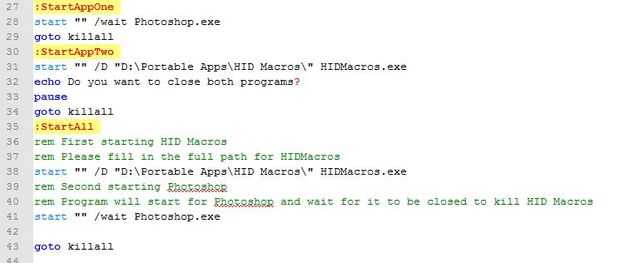 Cuando se trata de Photoshop, usted notará que he usado el interruptor/esperar . Esto dice la escritura que esperar para que Photoshop cerrar antes de continuar. Esta característica es útil aquí ya que supervisa los programas y me permite forzar cierre todo una vez que usted cierre Photoshop.
