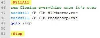 En primer lugar, yo utilice el modificador /F . Esto es para obligar a cerrar el programa. No pida ningún aviso ni nada, que manera ninguna entrada del usuario es necesaria.