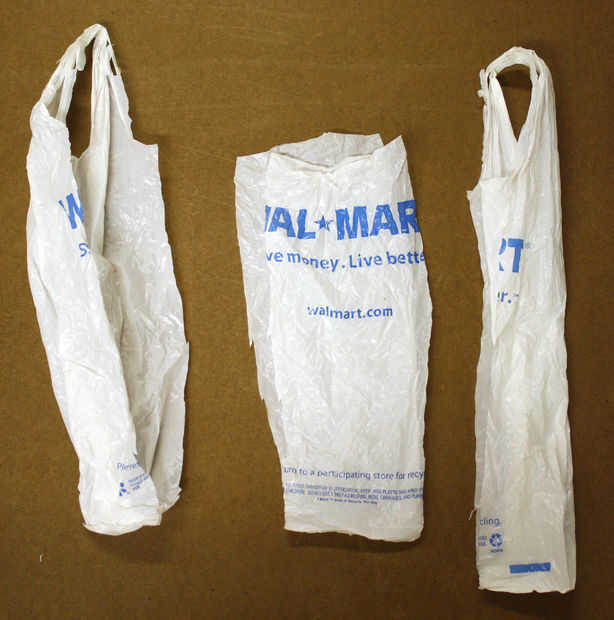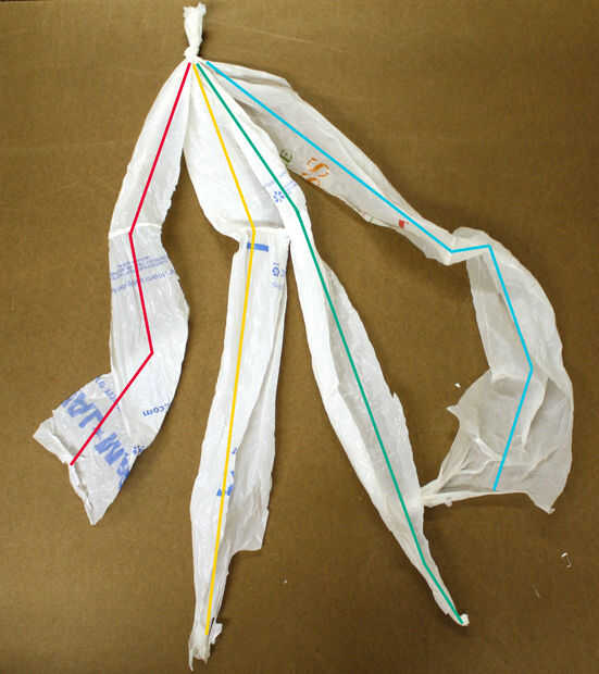 Primero tome dos bolsas de plástico y cortar en tercios (ver las fotos de arriba).