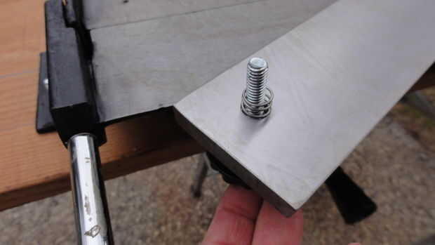 Los resortes deben ser lo suficientemente rígidos para levantar la barra de sujeción de la cama. Como se aprietan los botones, la compresa de la primavera en las hendiduras y la barra de sujeción puede proporcionar contacto para afianzar con abrazadera abajo de metal de hoja fino.