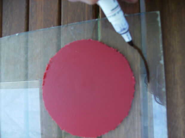 -Dibuje una ronda del círculo en el centro de la tapa y el círculo tan grande como sea posible, pero asegúrese de que usted deja 2 centímetros de margen, usted necesita este margen para unir el vidrio con pegamento.