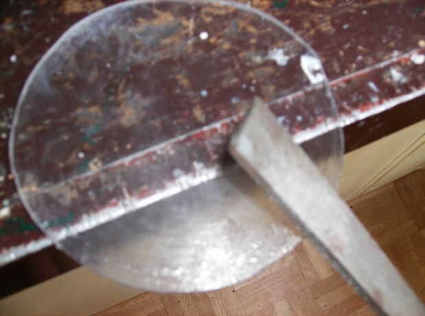 -Después de eso, tome el plexiglás. Poner la pieza redonda, que usted acaba de conseguir fuera de la tapa en el plexiglás. Dibuja un círculo alrededor de él. Asegúrese de que la distancia de la pieza redonda y del círculo es de entre 1,5 y 2 cm.