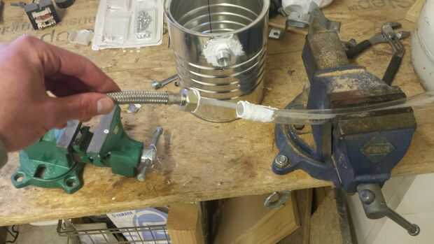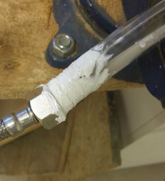Use masilla para sellar los huecos donde el poder y pezón conectan, para fijar el tubo fregadero y el segundo tubo de condensador juntos y sellar alrededor de donde el tubo de destilado sale el segundo tubo de condensador. Si usted tiene una espita o válvula que se ajusta solamente libremente en o sobre el extremo del tubo del segundo condensador, utilice masilla allí también.