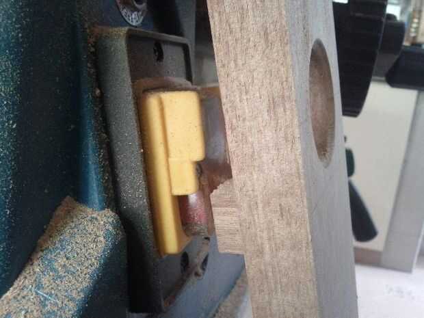 Yo fui inspirado por un post que había visto en un foro de un concepto muy similar. Había mejorado mediante la adición de un gran agujero en la tabla por lo que se puede llegar fácilmente al swicth de ON. He usado el router con un poco roundover pequeño a smoth el borde del agujero, pero podría utilizar un raspador fino o papel de lija en un taco.