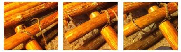 una) un ballestrinque se ata alrededor de la ayuda de la plataforma. (Envuelva el extremo alrededor de la parte derecha de la cuerda). Hacer un lazo en el funcionamiento final y pase sobre el larguero de primer piso en el interior del soporte de la plataforma.