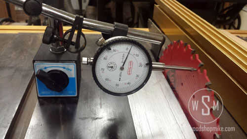 Movimiento derecho adelante, establecer el indicador de dial para medir la brida. Configuración de la aguja como perpendicular al reborde posible hará las cosas un poco más precisa, pero no sudar demasiado. Se trata de una sierra de mesa después de todo, no mecanizado equipo. Para mí, si la brida hacia afuera es. 002" o menos, sólo tienes que ir comprar un buen disco y estar en su camino feliz. De lo contrario obtendrá listo para pasar un buen rato!