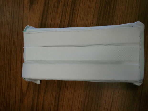 Si no desea que el inserto de espuma para deslizarse en el soporte, es aconsejable colocar una tira de velcro para pie de cama de la espuma y en la parte inferior de la tela que rodea la espuma.