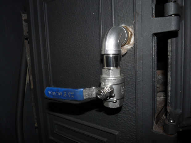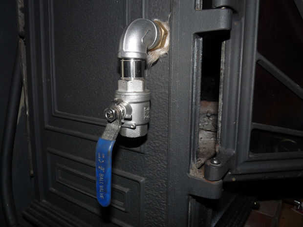 Esto ayudó a difundir la toma de aire en toda la anchura del fuego y también aumentó la temperatura de la mezcla de gas y aire, generando una llama blanca, incluso más limpia combustión, evidente en las puertas de cristal. Desde la última modificación con el tubo largo de acero inoxidable perforado según lo sugerido por Gardenweld, el termómetro infrarrojo ha registrado temperaturas la escala de 400 grados centígrados. El fuego era tan caliente que causa el agua a la caldera dentro porque la bomba de agua no funcionaba lo suficientemente rápido. Tienen ahora mayor velocidad de la bomba y se ha enfriado el fuego mejor y potenciado la oferta del radiador y agua caliente.