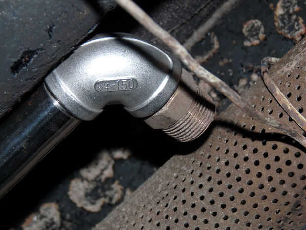 Ver imágenes últimas 7. Ahora, gracias a una sugerencia en los comentarios, una modificación adicional fue instalada, que implicó perforación existente superior inoxidable "tubo 3/4 de pulgada y añadiendo una longitud adicional de acero inoxidable roscado de tubería, junto con una toma de 3/4" y taparlo con una tapa de extremo con rosca de 3/4".