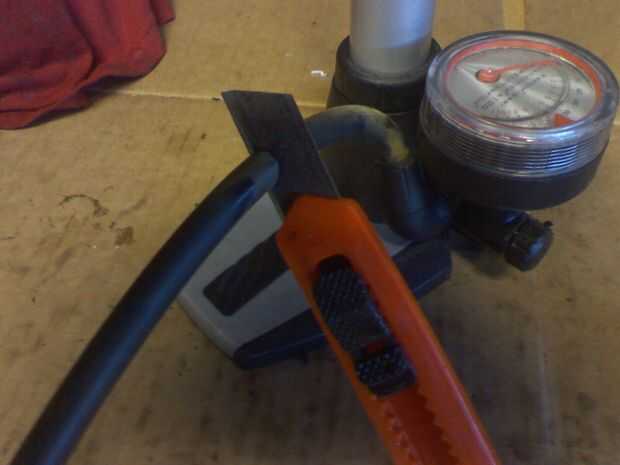 Corte la manguera a la longitud deseada de la bomba de pie quebrado.