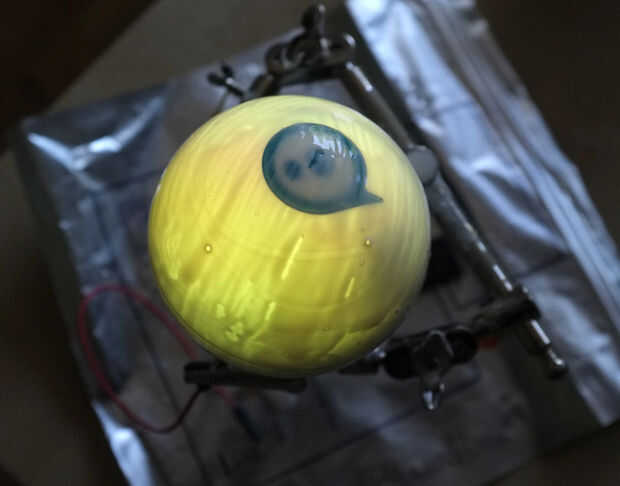 Por esta razones, ordené 250 ml de líquido de látex de eBay (precio ~ 10 USD) y trató de cubrir esfero con látex.