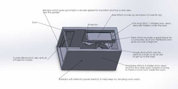 Ahora mismo, estoy durmiendo en un dormitorio pequeño con cama básica. Hace su trabajo, pero realmente, es muy aburrido! Decidí hacer mi cuarto sueño lleno de gadgets y ideas de ahorro de espacio. Usted puede encontrar el enlace de descarga al archivo sólido-trabaja aquí.