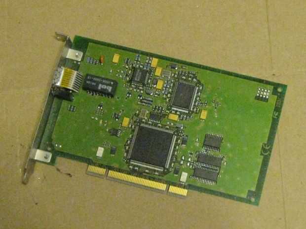 Lo que necesitamos es un transformador de pulso, un transformador está diseñado para transmitir señales digitales, y que es capaz de por lo menos 20MHz para apoyar nuestra señal de audio de 192kHz S/PDIF PCM. Con el pensamiento un poco fuera de la caja, nos damos cuenta de que cada tarjeta de Ethernet de la computadora tiene una tal transformador para aislar galvánicamente el circuito de interfaz de red desde el medio de transmisión, el cable Ethernet. Todo lo que necesitamos hacer es encontrar un viejo 10/100 Ethernet Tarjeta de red y robar un transformador de pulso, que tenía un viejo AMD PCnet 10/100 tarjeta de mentira alrededor de la cual había un transformador de pulso marca en él. Más común en las tarjetas Ethernet son transformadores de pulso o de la marca Bel. Cualquier transformador adecuado para FastEthernet debe ser adecuado para nuestras necesidades de S/PDIF.