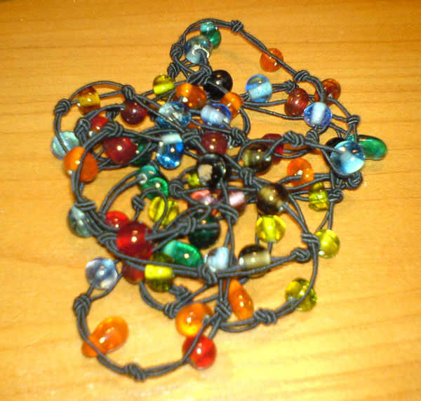 Hemos querido darle a nuestro amigo este "collar". Es bastante agradable, brillante, hecho de vidrio.