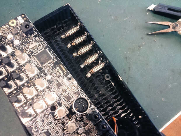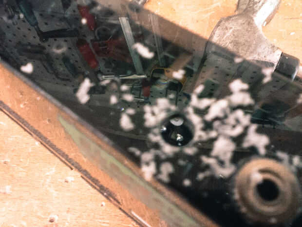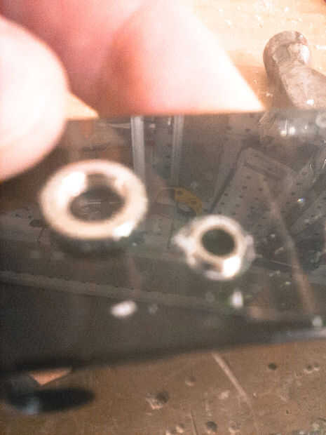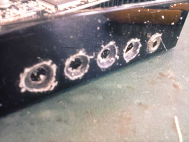 Mis conectores no tienen suficiente longitud para caber a través de la carcasa, así que tuve que borrar algún material extra alrededor de él con una broca más grande.