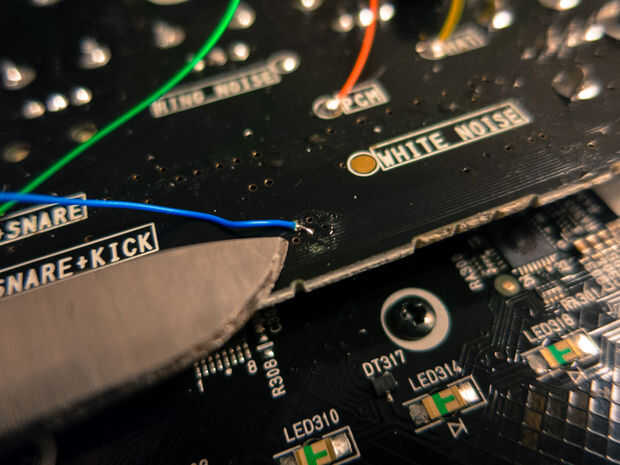 Con esta conexión, usted puede conectar Conecte los electrodos se muestra en la imagen para las puntas de los conectores de 3,5 mm. Las almohadillas para TOMS, sombrero y PCM son fáciles de encontrar, pero KICK y SNARE son un poco más difícil de encontrar. RETROCESO es la pierna derecha de la mayoría de la olla de arriba-derecha (haga clic en la patada). TRAMPA es una en el medio de las pequeñas vias entre ruido blanco y TOM + lazo + patada, déjeme por favor saber si el panorama no es claro!