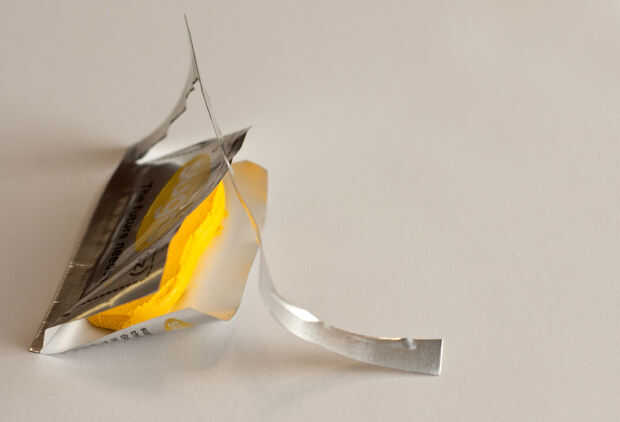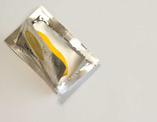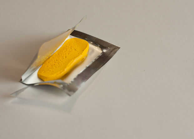 Open el corte de paquete Sugru a lo largo de tres lados y con los dedos lo divide en dos partes iguales. Manipular cada mitad hasta que se convierte sobre un óvalo, no tome más de un par de minutos, Sugru es bastante rápido para secar.