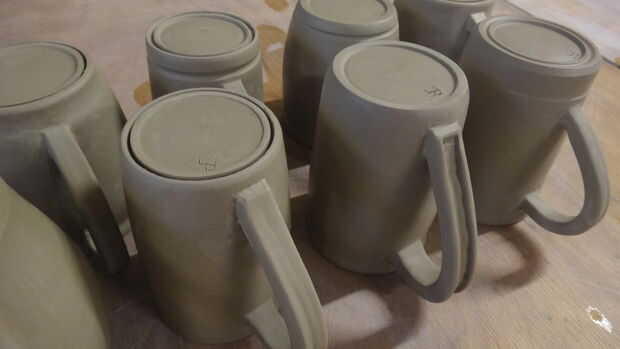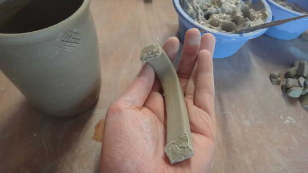 • Arcilla se contrae entre 10-20%, así que quieres el vaso y manija para ser similares en contenido de humedad sequedad. Sugiero que los deja en la misma bolsa sellada durante 24 horas en caso de duda. Debe sentir "cuero duro".