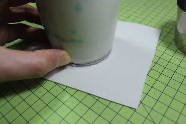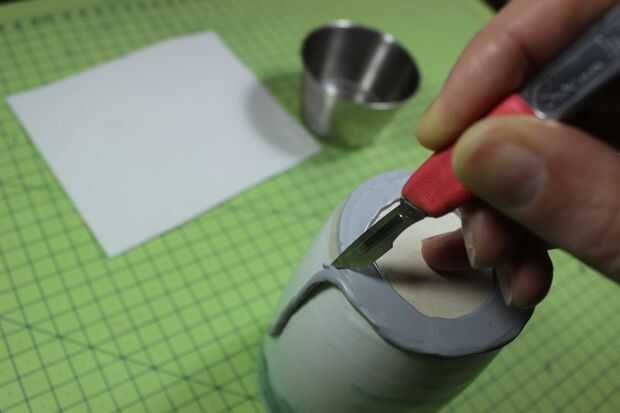 4. Recorte el exceso con un bisturí. Puedes ver estoy descansando mi pinky en la base como ir, esto mantiene constante el ángulo de corte. Giro el pote redondo como ir, en lugar de la hoja.