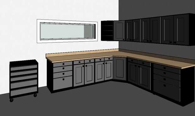 Este amplio garaje cuenta con puntos múltiples de coche y un gran taller. Hay un montón de espacio para almacenar "juguetes" en este espacio de hombre DIY inspirador. Para este diseño un Lamborghini y un Jeep sentado esperando en el garaje. También con este gran espacio de trabajo, hay un montón de espacio para almacenar herramientas, piezas y equipos para el próximo proyecto innovador.