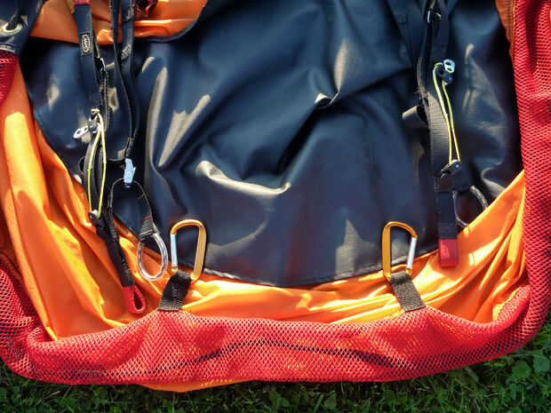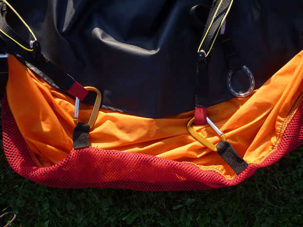 George dice: gente volar con enganchar un mosquetón grande a través de ambas bandas inmediatamente después del desenganche de la silla. En el saco, el mosquetón se une a una de las características existentes para mantener en un solo lugar. Conecte al mosquetón a su arnés para su custodia durante el vuelo y podría ser útil en una situación de rescate.