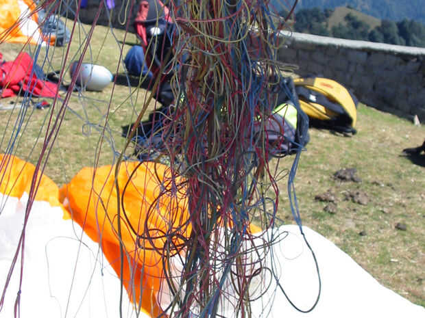 Cuando guarde mi parapente en un saco de cosas, anteriormente hice algunos mantener las canalizaciones verticales separados uno del otro y sin torsión. Esto funcionó más fina de la época, pero a veces cambio alrededor y de torcerse se la saco fue sacudido alrededor. También a veces olvido cómo poner la vela a la vez anterior y terminaría torciendo algo en el proceso de eliminación de él.