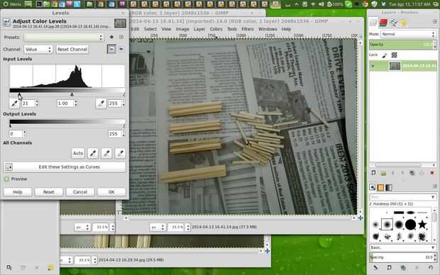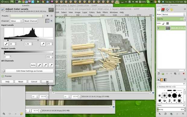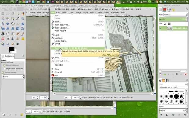 Cuando haya terminado manoseando los triángulos nivel de color, haga clic en el botón "OK" en la parte inferior derecha del cuadro de diálogo. Ahora son de color se establecen niveles, podemos guardar la imagen. Ahora puede guardar la imagen de la misma manera que todo lo demás en el equipo, haga clic en el menú superior "archivo". Puede guardar esta imagen ajustada como otro nombre de archivo, o la mayor parte del tiempo simplemente hacer clic en "Sobrescribir (filename)". Tengo la imagen original en mi cámara para volver a si es necesario.